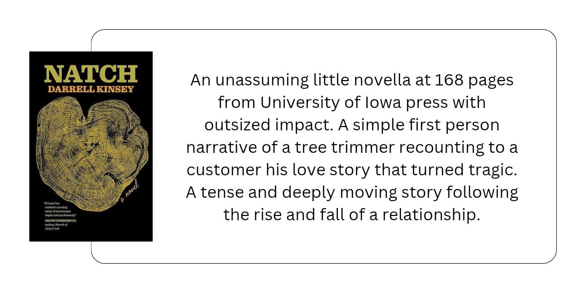 The Devil Three Times by Rickey Fayne. A sprawling family saga following 8 generations of a Black family in Tennessee beginning with an enslaved woman who makes a deal with the Devil in the bowels of a slave ship. I found my way to this impressive debut via the Center for Fiction 2025 First Novel Prize Longlist (the book is now shortlisted.) It became a must read after hearing Sara Hildreth rave about it and even more so after listening to her interview with Rickey Fayne. Across centuries Fayne explores familial connections and inheritance, faith, fate, and agency, moral ambiguity, salvation, and more. It’s a tricky one to easily and comprehensively describe, but so richly told I was fully entranced! I listened to parts of this on audio, which is excellent with multiple narrators. The one caveat I have to audio format is the print copy has a family tree at the beginning that I appreciated being able to reference as the book jumps across time and perspective. The family tree is not required, though I found it helpful to keeping the characters and their connections straight, just FYI. Recommended for readers of The Love Songs of W.E.B. Du Bois by Honorée Fanonne Jeffers.